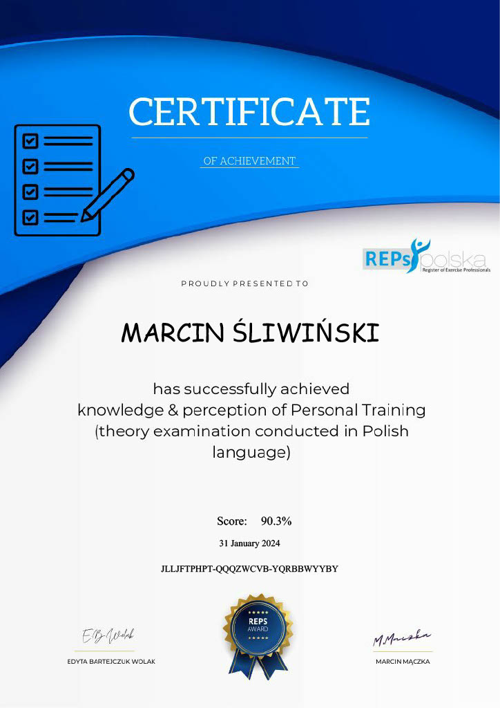 Nazywam się Marcin Śliwiński i jestem trenerem personalnym z pasją do przekształcania trudnych celów w realne rezultaty.
